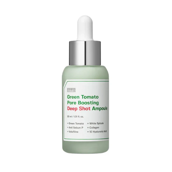 - Tinh chất Sungboon Editor Green Tomato Pore Boosting Deep Shot Ampoule (chứa Basil Oil)